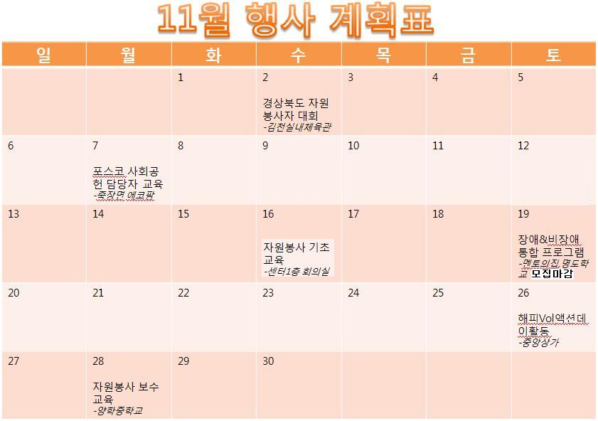 포항시자원봉사센터의 11월에 있는 행사 및 교육을 게시했습니다.