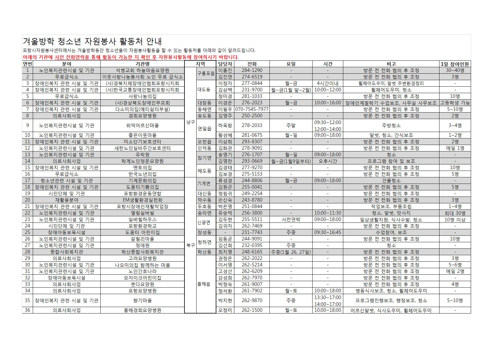 | 청소년자원봉사활동처안내 | |||