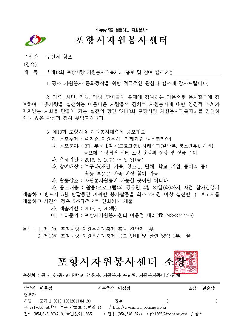 | [공모] 제13회 포항사랑 자원봉사대축제 | |||