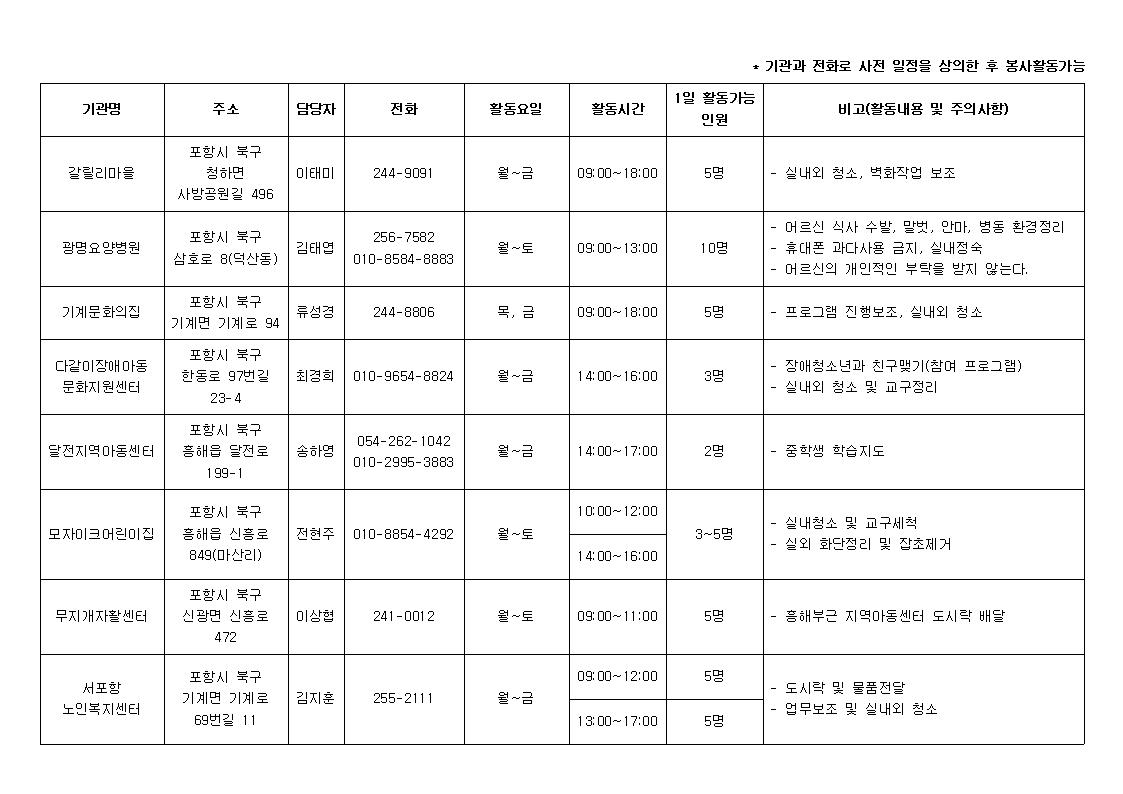 첨부파일을 확인하시고 반드시 봉사활동 전