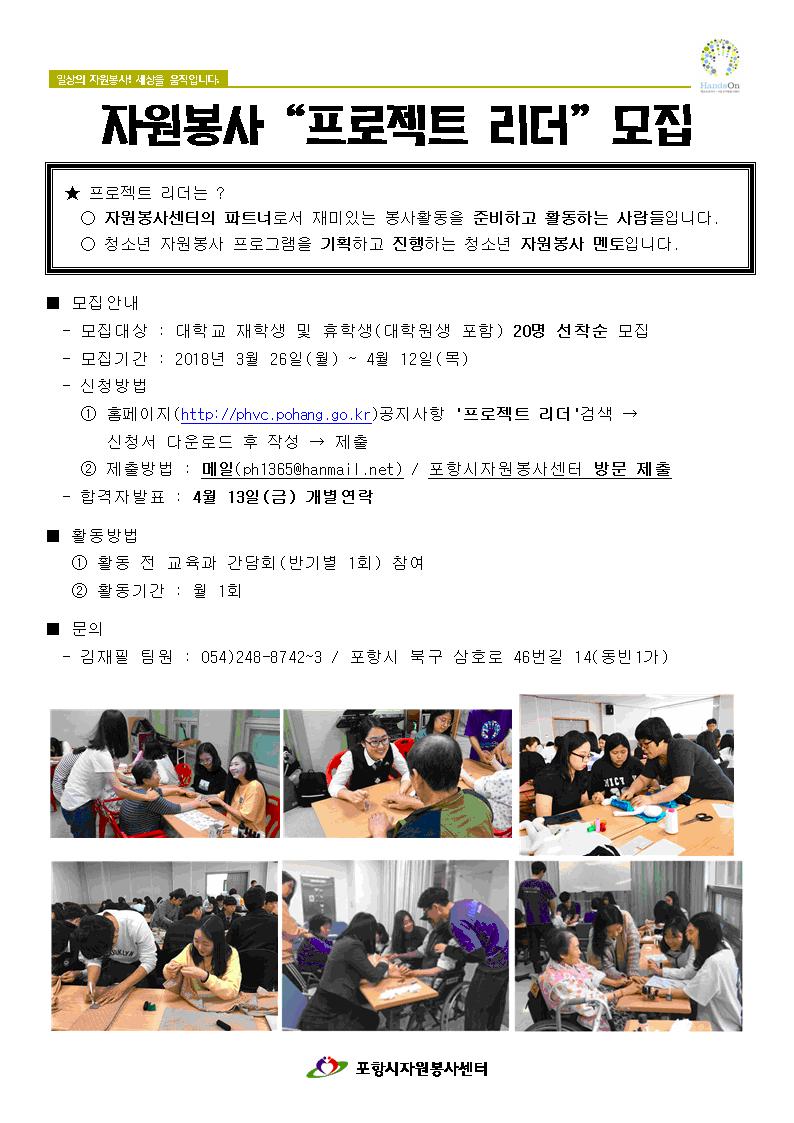 | [모집] 자원봉사 프로젝트 리더 모집 | |||