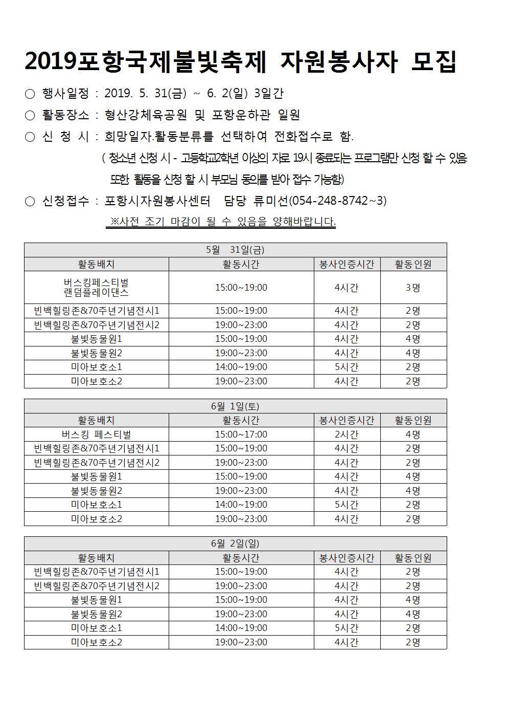 | [모집]2019 포항국제불빛축제 자원봉사자 모집 | |||