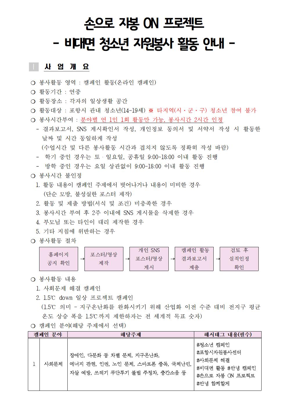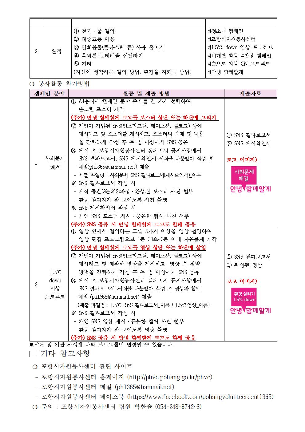| 비대면 자원봉사 3,4탄- 사회문제 해결 SNS 캠페인, 1.5℃ down 일상프로젝트 SNS 캠페인 | |||