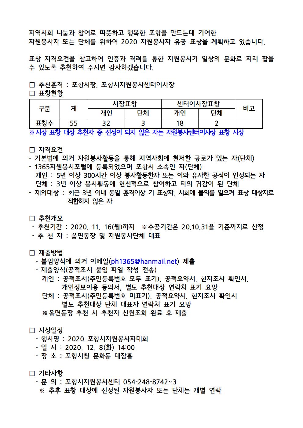 | 2020 포항시 자원봉사 유공자(단체) 표창 추천 | |||