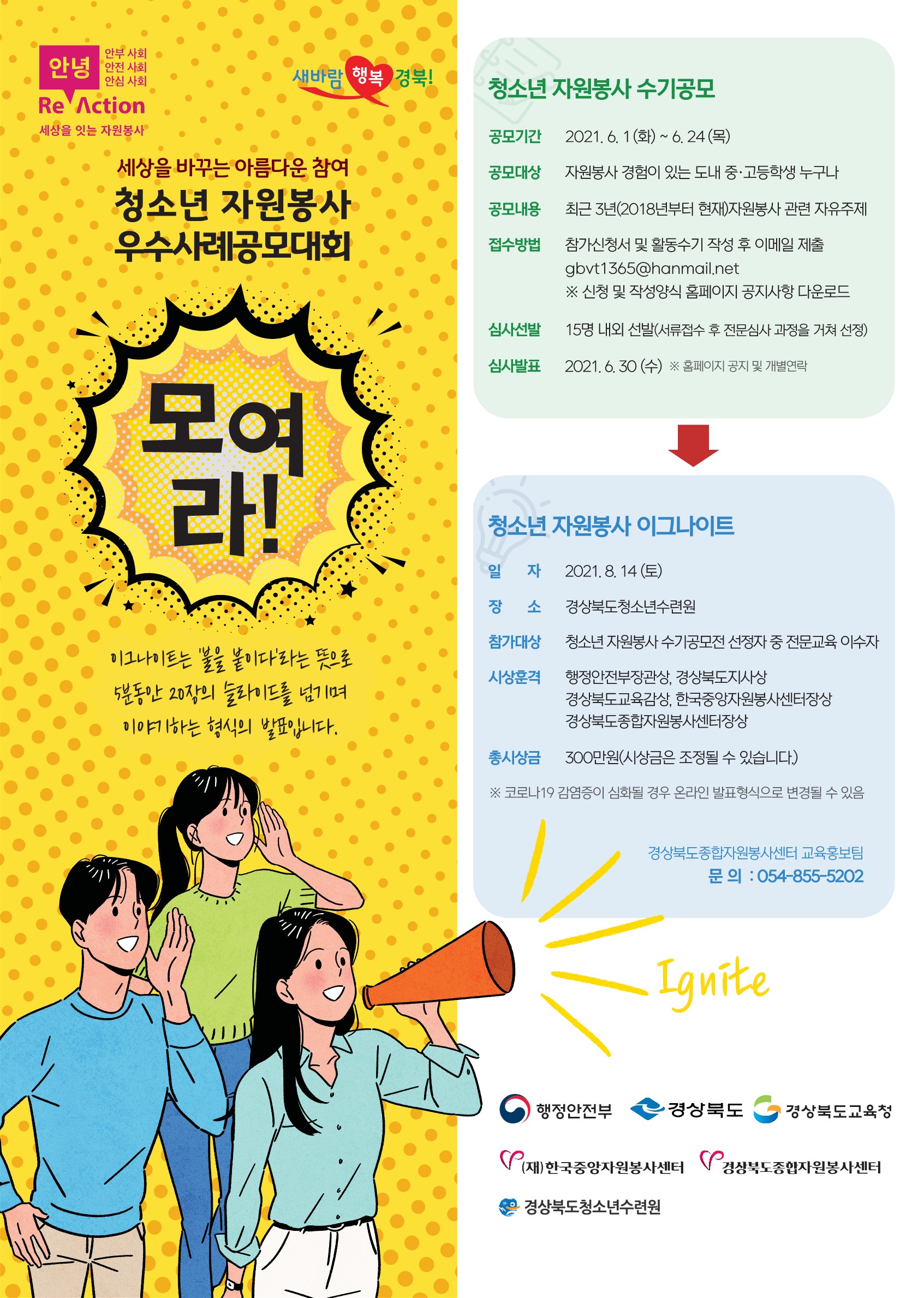 | [공지] 경북 청소년 자원봉사 우수사례 공모대회 (이그나이트 대회 수기공모전) 홍보 | |||