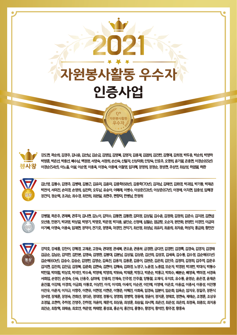 | 2021 자원봉사활동 우수자 인증 | |||