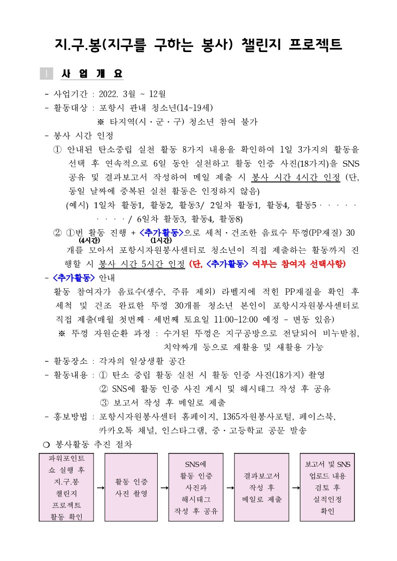 시스템 오류로 다시 업로드합니다. [지.구.봉 챌린지 프로젝트] 참여 시 참고 및 필수 사항