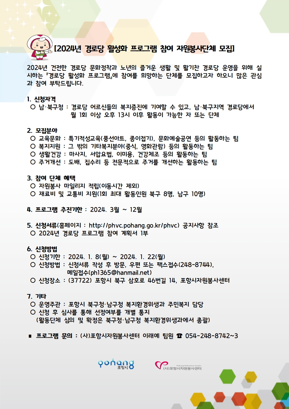 | 작성자 | 포항시자원봉사센터 | 작성일 | 2024-01-08 09:38 |