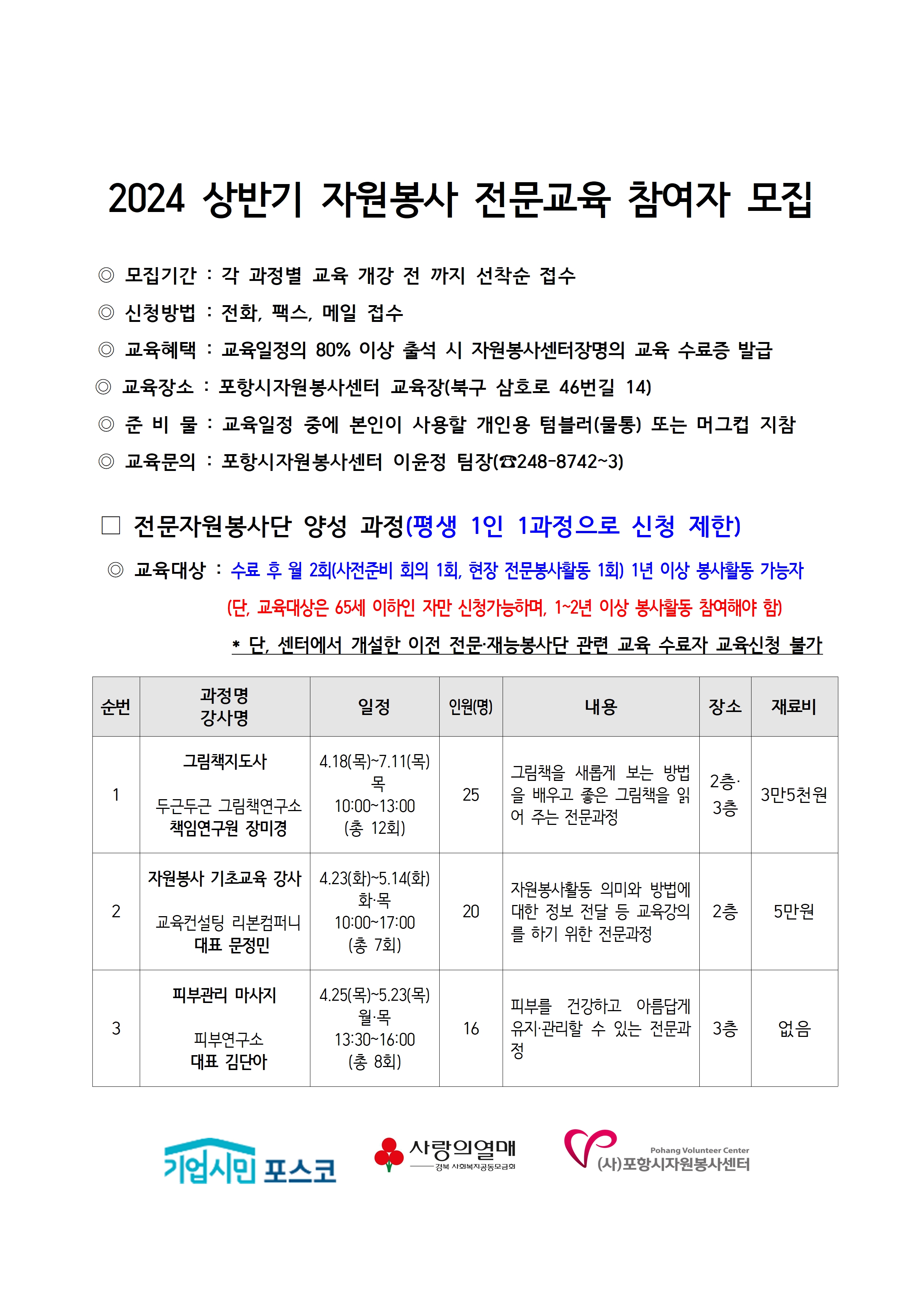 | 2024 상반기 자원봉사 전문교육 참여자 모집 | |||