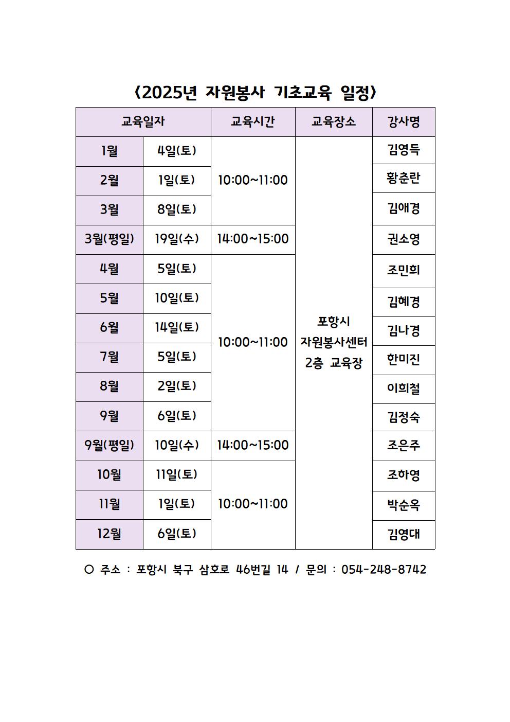 | [공지] 2025년 자원봉사 기초교육 일정 | |||