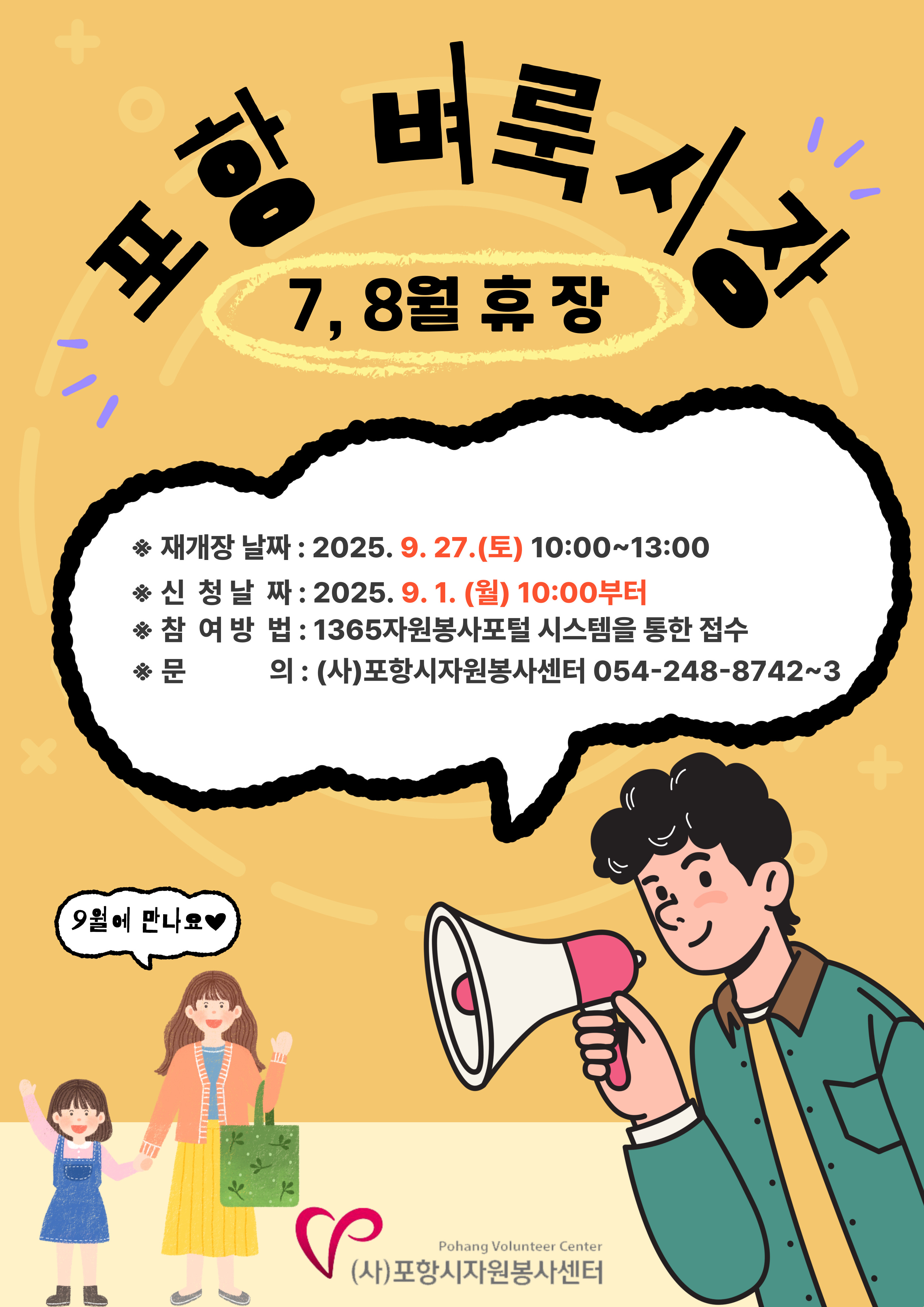 | [공지]2025 포항 벼룩시장 휴장(7월, 8월) | |||