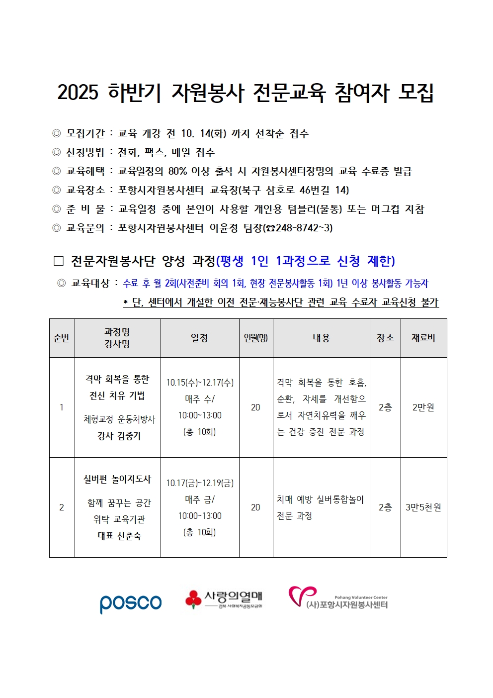 붙임2025 하반기 자원봉사 전문교육 홍보문 및 신청서(확).hwp 171.5K