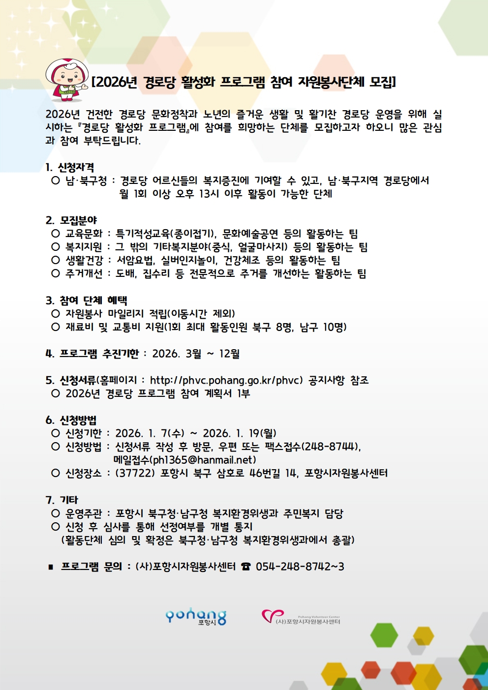 2026년 경로당 활성화 프로그램 참여 자원봉사단체 모집 |