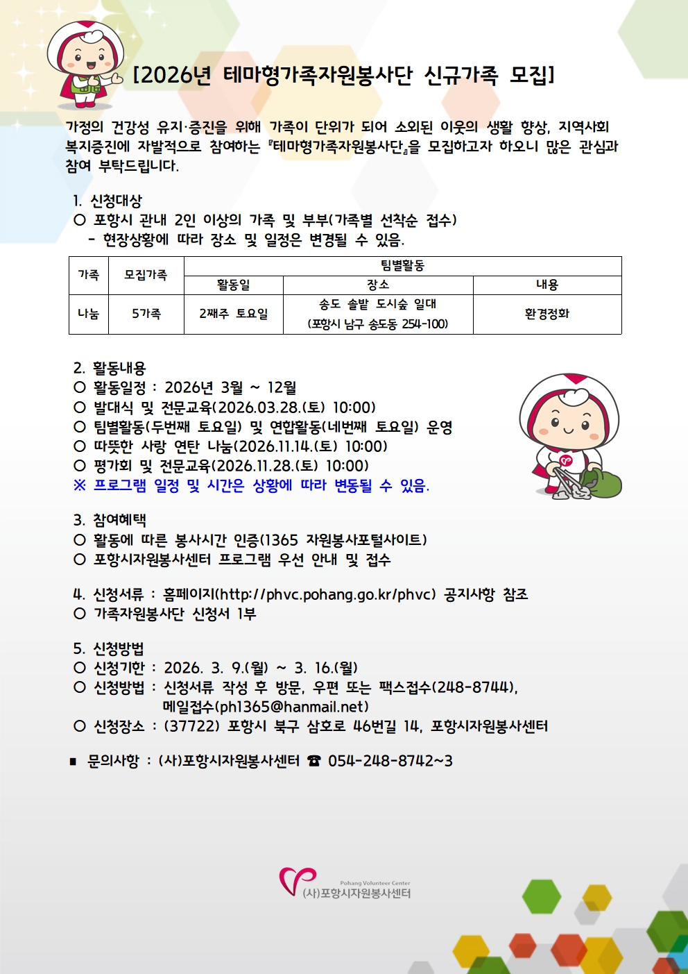 | 2026년 테마형가족자원봉사단 모집 | |||