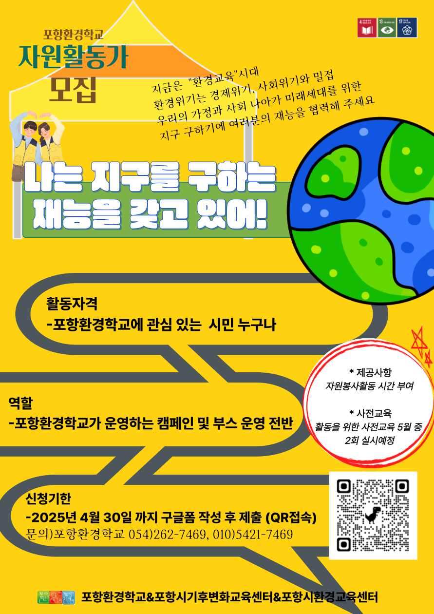 2025년 포항환경학교 자원활동가 모집 안내 |
