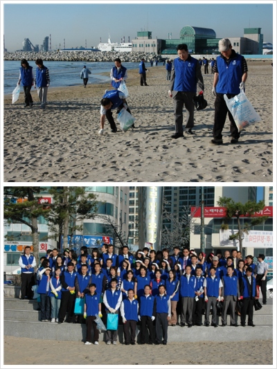 우리은행은 포항지역 소재 6개지점과 1개의 수신센터 직원 총80여명(봉사활동 담당: 우리은행 연일지점 부지점장 이경숙)은 2008년 6월 12일 아침 6시30분부터 제5회 포항시민의날을 맞이하여 실시한 우리은행 직원들의 자발적인 봉사활동으로 북부해수욕장에서 쓰레기를 줍는등 청결봉사활동을 실시하였습니다. 포항사랑을 실천하는 우리은행 앞으로도 활발한 봉사활동 부탁드립니다. 새벽부터 활동하시느라 수고 많으셨습니다. |