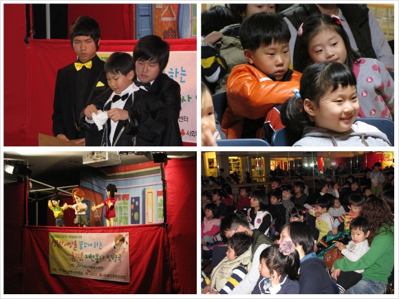 포항시자원봉사센터는 SK텔레콤과 함께하는 자원봉사단 운영 행복한 세상을 꿈꾸게 하는 즐거운 자원봉사 인형극 공연(후원:한국자원봉사센터협회, SK텔레콤, 사회복지공동모금회)을 2월 28일 오후 4시30분부터 1시간동안 이마트 포항이동점에서 공연하였습니다.