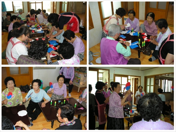 태극부채를 만들어 부채도 부쳐보고 노래도 함께 부르면서 즐거운 시간을 보내고 돌아왔습니다. |
