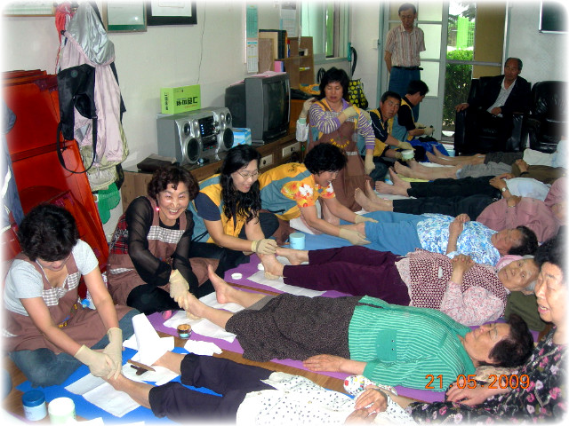 발을 사랑하는 모임(회장 권세동)에서 5월 21일(목) 오천읍 용산1리 용산타운 경로당에서 할아버님과 할머님들께 건강 발마사지를 해드리고 왔습니다. 할아버지와 할머니께서 나란히 마사지를 받으시는 모습이 좋아보입니다. 항상 어르신들의 발을 정성껏 만져주시는 발사모 회장님 이하 회원님들 수고많으셨습니다~ |
