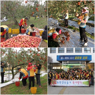 11월 17일(화) 포항시자원봉사동아리연합회 회원 48명이 기북면을 찾아 사과를 따고 왔습니다. 추운 날씨에도 불구하고 열정적으로 활동에 임해주신 회원분들께 감사드립니다~!