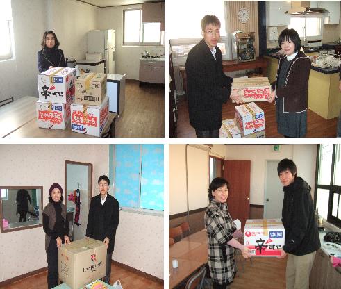 나눔활동에 후원된 라면 총 1,100여개를 2010년 1월 22일(금) 송라, 흥해, 동해 오천 등