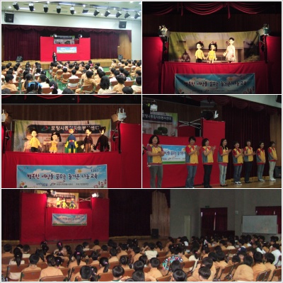 일시: 2010. 5. 26(수) 장소: 지곡초등학교 대상: 1, 2학년 활동인원: 꾸러기인형극단 8명 내용: <신난다~ 자원봉사!> 자원봉사 인형극 공연 및 자원봉사 홍보 |