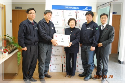 2011년 1월 28일(금) 현대제철에 근무하시는 직원분들께서 방문을 하여 라면 40BOX를 후원하여주셨습니다. 변함없는 관심과 사랑을 배풀어주신 현대제철직워분들께 감사드립니다. |