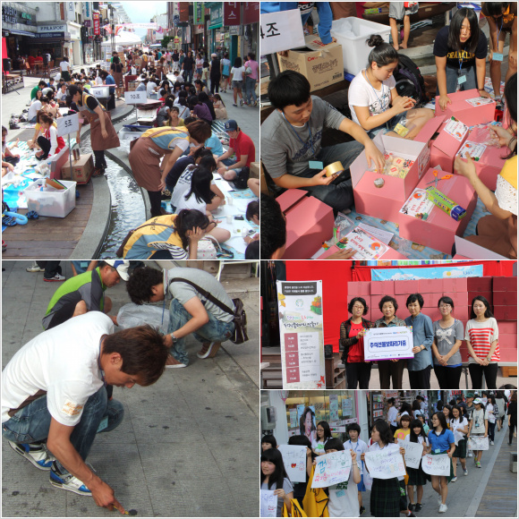 일시: 2011. 8. 27(토) 14:00~17:30 장소: 중앙상가 실개천 일원 내용: 페이스페인팅, 풍선아트 추석선물보따리만들기 캠페인, 환경정화(껌떼기) 마술공연 자원봉사인형극 공연 |
