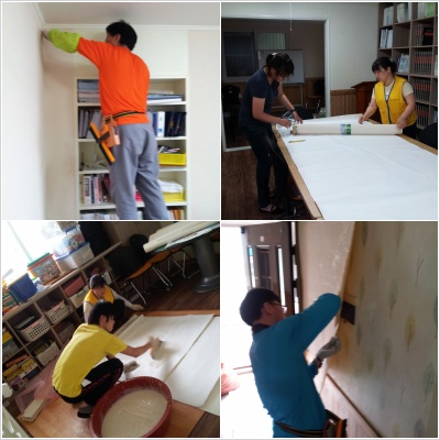 7월 2일 경상북도장애인부모회센터의 개소식을 위하여 포항시자원봉사센터에 의뢰가 들어온 "도배활동" 바르미와 둥지회의 연합활동을 통하여 성황리에 마무리를 하였습니다. 무더운 날씨에 고생을 해주신 봉사자 선생님들께 깊은 감사를 드립니다.