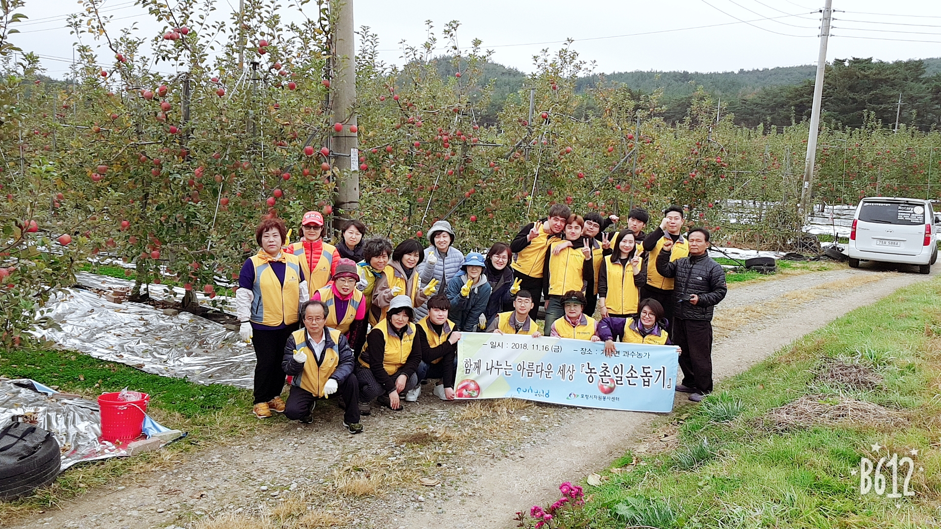 18.11.16 포항시자원봉사센터 동아리연합회 및 자생단체들의 참여로 50여명의 자원봉사자분들이 기계면, 흥해읍, 신광면 과수 농가 3가구에 일손을 도왔다. |