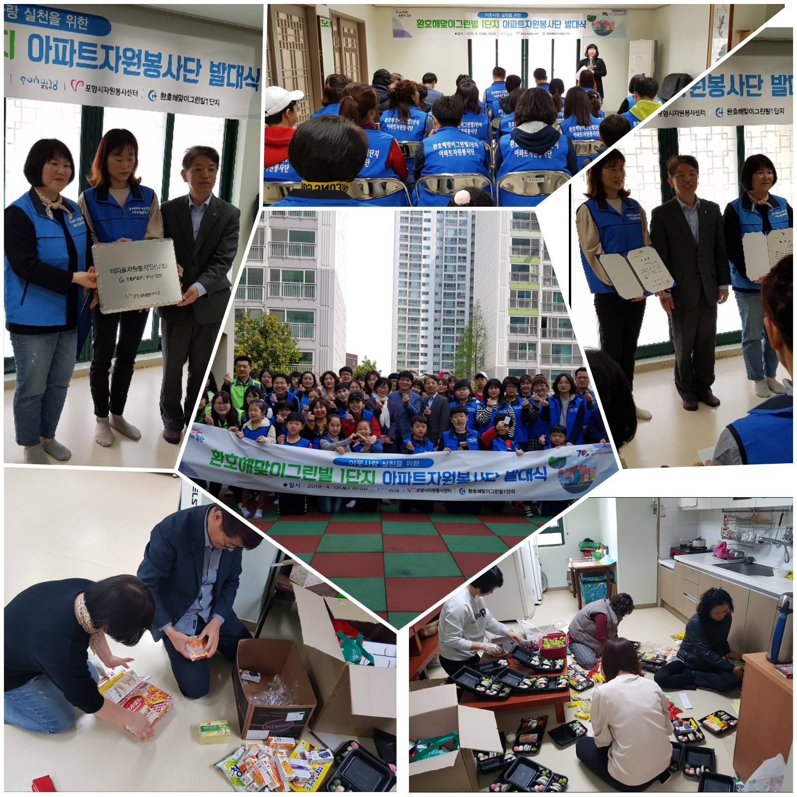 [ 제12호 환호해맞이그린빌1단지 아파트자원봉사단 발대식 진행 (2019. 4. 13(토) ] - 아파트자원봉사단은 공동주거단지인 아파를 중심으로 이웃간의 갈등을 해소하고 서로 배려하는 문화조성을 위해 시작된 사업으로 살고 있는 아파트 이웃 간의 소통과 봉사활동을 통해 따뜻하고 정있는 아파트문화를 조성하기 위한 프로그램입니다. |
