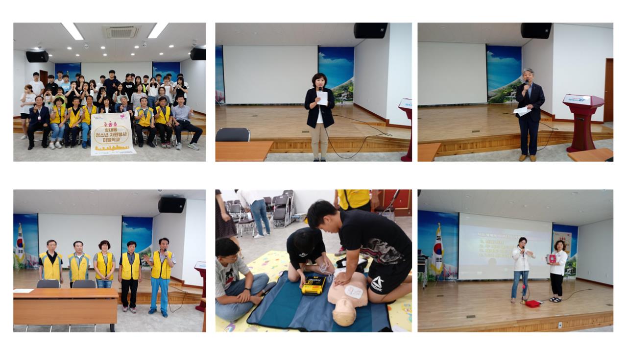 상대동 청소년 자원봉사 마을학교 일시 : 2019. 7.24~26 (09:00~12:00) 3일간 상대동행정복지센터에서 자원봉사 기초교육, 심폐소생술, em 흙공 만들기, 핸드마사지 ,요양원 방문활동을 실시하였습니다. |