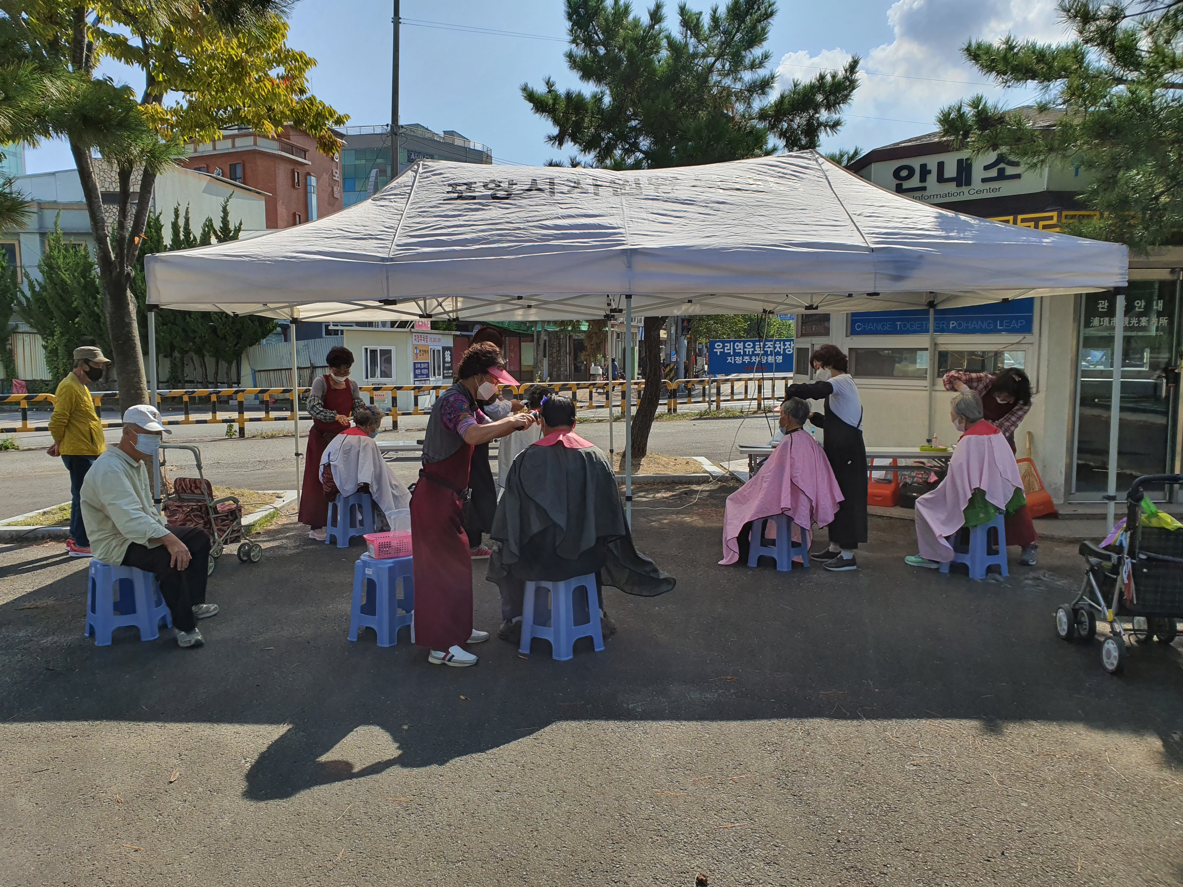 포항시자원봉사센터(소장 권오성)에서는 9월 28일(월) 10시~14시까지 (구)포항역 광장에서 가위사랑(회장 김옥이), 하사랑나눔(회장 장상필)봉사단은 2020자원봉사단체 우수프로그램지원사업의 일환으로 “추석맞이 이미용 재능나눔”활동을 진행하였다. |