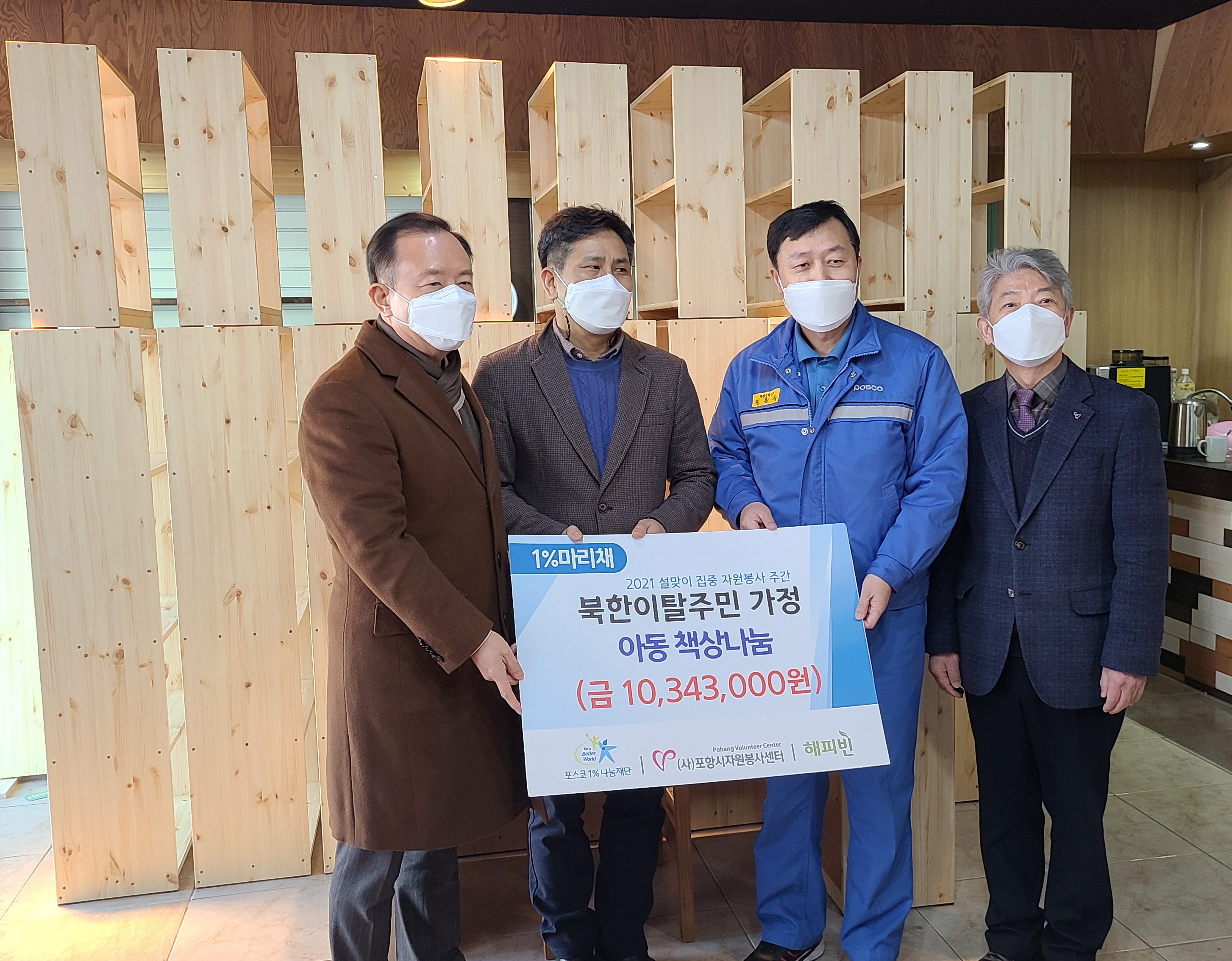 [북한이탈주민가정 청소년 책상 나눔 전달식 진행] 일정 : 2021. 2. 4 (목) 10:30~ 장소 : 고운결공방 지난12월 부터 올해 1월까지 포스코1%나눔재단 네이버 해피빈 모금함을 통해 포스코 임직원 및 일반시민의 후원으로 이루어 졌으며, 저소득 가정의 북한이탈주민가정 청소년 17명에게 책상, 의자, LED스탠드 SET를 전달하였다. |