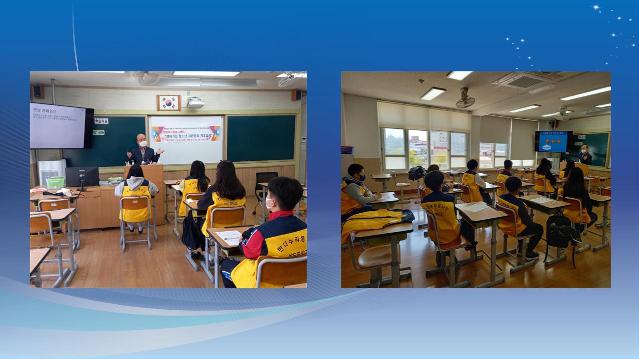 [찾아가는 자원봉사 기초교육] 일시 : 2022 년 4 월 16일 (토) 13:00 강사 : 원영만 선생님 장소 : 상도중학교 3층 2-4 교실 대상 :교육복지우선사업 봉사동아리 10명 |