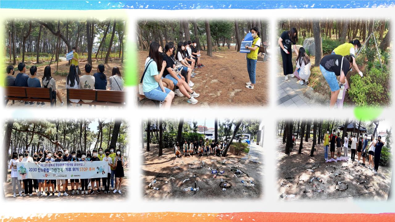 2022 자원봉사 우수프로그램개발 공모사업 [기후 위기 STOP 투어] • 일 시 : 2022. 6.18.(토) 10:00~12:00 • 장 소 : 송도 솔밭 도시숲 • 인 원 : 청소년 17 명 / 포항환경학교 강사 3명 • 내 용 : 기후 생태계 관련 교육 및 포레스트 코밍, 탄소중립 캠페인 진행 |