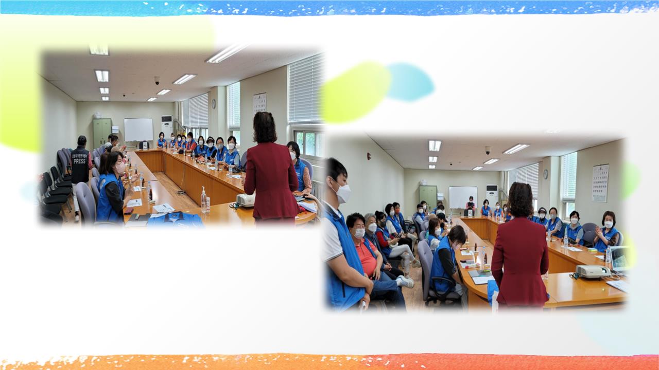 [찾아가는 자원봉사 기초교육] - 양덕풍림아이원 아파트자원봉사단 일시 : 2022 년 6 월 18 일 (토) 9:00 장소 : 양덕풍림아이원아파트 입주자대표회의실 대상 : 양덕풍림아이원 아파트자원봉사단 19명 강사 : 김나경 강사님 |