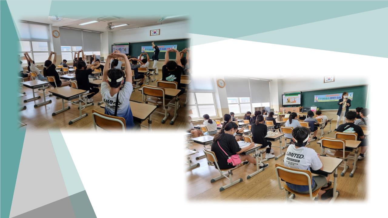 [찾아가는 자원봉사 기초교육]-연일초등학교 일시 : 2022 년 6 월 25일 (토) 09:00 장소 : 연일초등학교 음악실 대상 : 연일초등학교 교육복지우선사업 동아리 학생 19명 강사 : 김주야 강사님 |