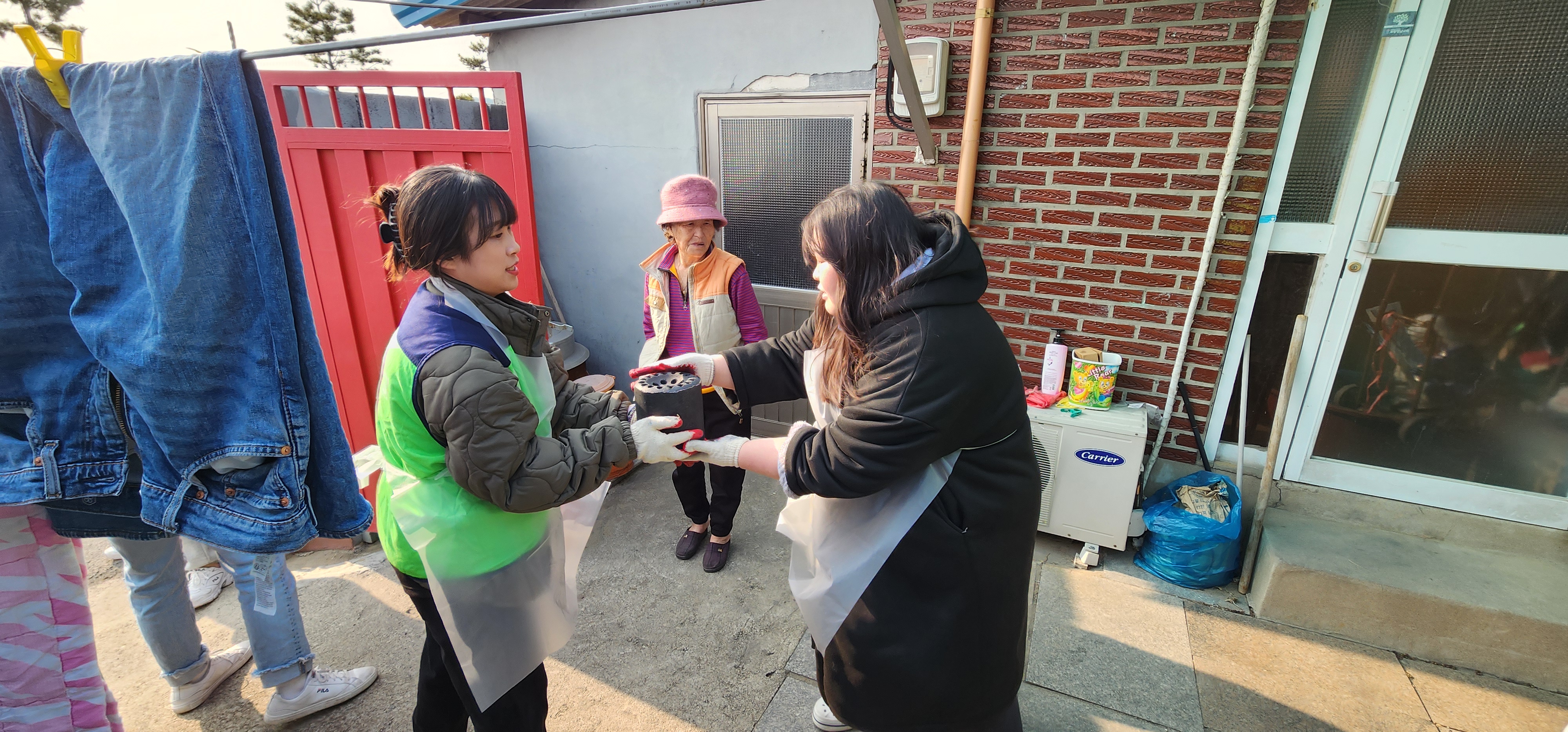 - 일시 : 2025. 1. 23.(목) 14:00 - 장소 : 포항시 북구 환여동 일원 - 참여단체 : 40여명(대한적십자사봉사회 포항지구협의회, 포항대학교GB대학사회봉사단, 포항시자원봉사동아리연합회, 장량동자원봉사거점센터) - 내용 : 환여동 취약계층 5세대(1세대 당 연탄 500장)대상 연탄 2,500장 나눔활동 |