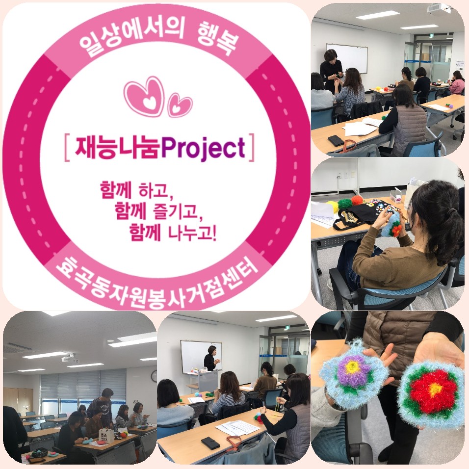 장소 : 효곡동자원봉사거점센터 사무실 대상 : 효곡동 주민 내용 : 자원봉사의 기본교육 및 재능기부자의 손뜨개 지도 당담 : 류미선 팀원 효곡동 평생학습원 내에 자리한 효곡동 자원봉사거점센터에서 오늘(14일) 박영화 강사(거점센터상담가)의 진행으로 재능 나눔 손뜨기가 진행되었다. 바람이 불어 체감온도가 떨어져 다소 춥게 느껴진 겨울 아침이였지만 작은 쇼핑백에 손뜨게 재료를 가득 담은 참가자들이 모이기 시작했다. 만들어진 완성품은 (사)포항시 자원봉사센터를 통해 필요한 이웃들에게 기부할 예정이다. 자원봉사자겸 효곡동 거점센타 상담가인 한명은 처음엔 손뜨게를 배우고 싶어 참가한 시민이였지만 손뜨게로 수세미를 만들어, 나눔을 실천하고 싶은 마음이 커져 지속적인 자원봉사자로 나섰다고 한다. 자원봉사센터는 구도심 속에 특별한 자원봉사자와 시민들이 만나는 공유 공간인 ‘Volo-Table' 을 만들어 재능 나눔 봉사자들과 포항시민들간의 소통의 공간을 다양한 프로그램들을 기획·운영하고 있다. 다양한 프로그램들을 통해 새로운 자원봉사 문화 확산 및 나아가 지역경제 활성화를 도모 하고자 한다. 또 나눔을 위한 정보 공유의 장소인 ’Volo-Table'을 확대 운영할 계획이다. 효곡동 자원봉사거점센터가 자원봉사자와 시민들의 소통의 공간 'Volo- Table' 로 잘 자리매김 되어 손뜨게도 배우고 나눔도 실천하는 소통의 공간이 되길 바래본다. (사)포항시 자원봉사센타 홍보단 : 김정희 ![]() ![]() ![]() |