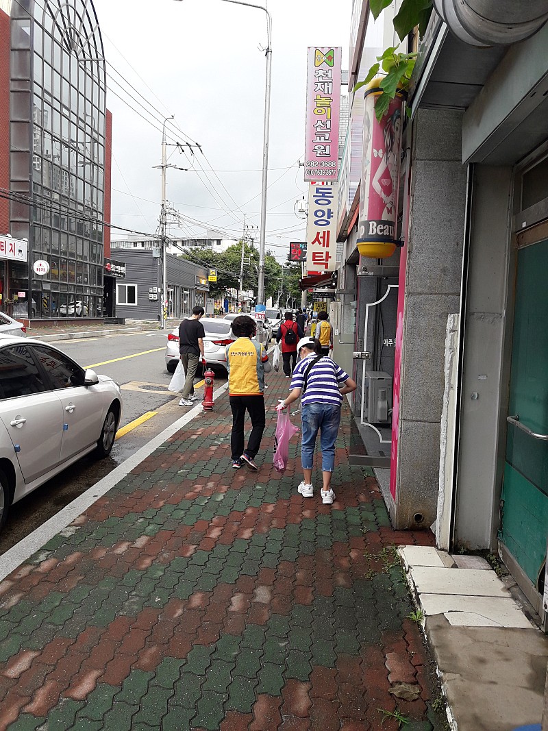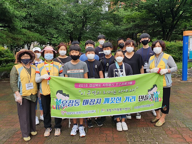 - 일시 : 2020년 7월25일 10:00~12:00 - 장소 : 우창동 경로당 및 공원 - 대상 : 우창동 지역자원 봉사대(대장 김이태) 및 청소년 20여명 - 내용 : 궂은날씨로 일정이 유동적이였지만 다행히 오전부터 장맛비가 소강상태를 보여 지역봉사대와 청소년 가족 20명이 참석한 가운데 일정과 방법을 서로 공유하고 경로당 주변과 공원을 중심으로 방치된 쓰레기를 수거한후 잠시 휴식도 없이 인근 두호시장과 골목길을 누비며 오물, 폐지를 수거하여 처리하였다. 후덥지근한 날씨에 고사리 손까지 힘을 보태며 땀방울을 흘린 덕분에 주변은 금새 깨끗한 환경으로 거듭날수 있었다. - 취재 : 홍보기자 정순택