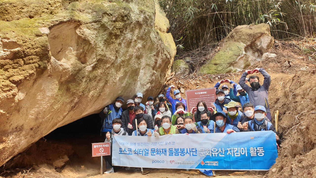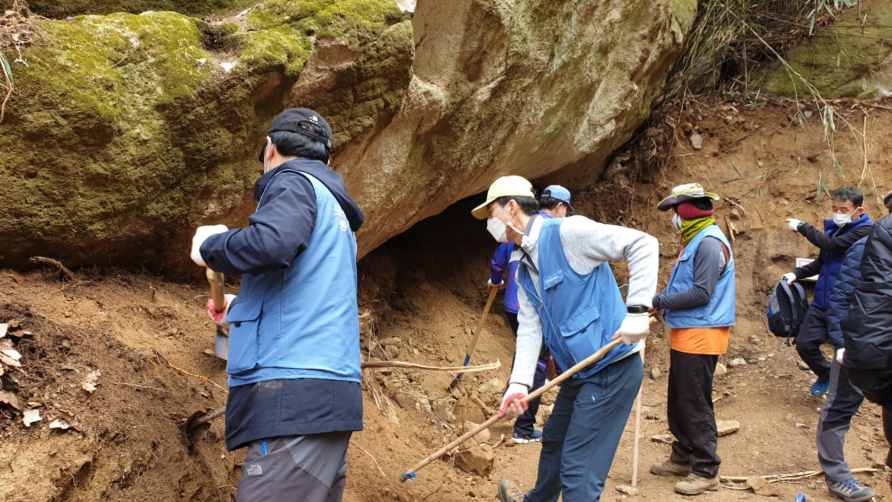 - 일시 : 2021. 3. 13.(토) 9:00~13:00 - 장소 : 장기면 임중리 국구암 일원 - 대상 : 쇠터얼문화돌봄봉사단 단원 20명 - 내용 : 포스코쇠터얼문화돌봄봉사단의 2021년 첫 활동! 택일도 훌륭하다. 장맛비처럼 쏟아지던 어제와는 사뭇 다른 다정한 봄날이다. 버스에 탑승하니 왕승호 단장님이 그간의 국구암 현황과 오늘 봉사단이 해야 할 활동내용에 대한 설명이 이어진다. 사람이 접근조차 할 수 없던 곳에 오랜 시간 매몰되어, 존재 확인 조차 할 수 없던 국구암을 찾아갔다. 입구의 토사와 진입로를 중장비까지 동원하여 지난 2월27일, 28일 양일간 작업을 진행 하였으나 장비로는 불가하여 인력이 필요한 작업을 중심으로 이번 봉사활동이 진행되며, 40~50센티 정도의 토사를 삽으로 파내는 작업과 주변 정리 활동도 진행할 것이라 부연한다. 대로에서 국구암까지 가는 갈림길마다 일곱 개의 이정표를 세우고, 장구굴 앞 쓰러진 나무 제거와 국구암 입구를 가리고 있는 토사를 걷어 내어 통로를 확보하는 것이 오늘의 봉사활동 내용이다. 타고간 버스가 들어가기엔 길이 좁아 봉사단은 임중리 입구 큰길에서도 좀 떨어진 곳에 내려 국구암이 있는 산 중턱까지 걸어서 이동했다. 일곱개의 표지판을 세우기 위해 구덩이를 파고 메우고를 반복하며 봄 길을 걸어 국구암으로 향했다. 봄길을 걸어가며 KBS 전설의 고향에도 국구암에 얽힌 마미스님 전설이 극화되기도 했다 한다. 마을 주민들과 봉사단이 합심하여 대나무 장벽을 뚫고 길을 만들어 놓았다고 했는데 실제로 보니 길이 아니었던 적이 있었던가 싶게 말끔한 것에 놀랐다. 봉사단은 닦아놓은 길을 올라 국구암 앞에서 돌아가며 삽질을 시작했다. 시간의 흐름에 땀방울이 송글 맺힐 쯤 얼마나 오랫동안 고요를 품고 있었을지 알 수 없었던 암자에서 흙먼지를 뱉어냈다. 숙면을 방해받은 박쥐 몇 마리가 날아 나온다. 삽질의 끝이 멀지 않음이다. 지친 단원들은 잠시 목을 축이고 다시 삽질을 시작하고, 몇몇은 주변의 잡목들을 정리한다. 하라마라 할 것 없이 능숙히 손발을 맞춰 일사천리다. 허리를 구부리고 출입할 수 있을 정도로 일을 끝내고 나머지는 전문가의 손에 맡겨지리라. 시간의 틈을 비집고 들어선 국구암 안쪽은 마치 돔과 같다. 떨어지던 쌀알도, 중생의 번뇌망상도 전설이 되어 이곳에 함께 봉인되어 있는 것은 아닐까? 잠시 옷깃을 여며본다. 혹여 오늘 작업 한 국구암이 문화재로 등재가 된다면 포스코 쇠터얼문화돌봄봉사단은 얼마나 기쁘고 보람을 느낄까? 상상을 잠시 해봤다. 이곳의 활동이 다른 곳과 차별되는 것은 지역 주민들의 관심과 격려가 특히 두드러지는 곳이라고 왕승호 단장은 이야기 했다. 실제로 포항고문화연구회 강호진 회장님과 향토사학자 황인 선생은 오늘의 활동을 끝까지 함께 했고, 포항문화역사길라잡이 박재환 보경사 팀장, 이상령 회원, 정봉영 장기충효 관장, 법명 스님 그 외에도 몇 분의 지역 주민과 해설사께서 오늘의 활동을 지켜보고 감사와 격려를 건네고 갔다. 포스코 쇠터얼문화돌봄봉사단은 문화재에 대한 이해와 역량 강화를 위해 강사를 초빙하여 년간 30시간의 교육도 진행하고 있다니 날로 성장할 이들의 앞날이 궁금해진다. 오늘 32명의 봉사 단원 중 아들과 함께 참여한 김영학(재강설비부)씨는 “문화재 돌봄 봉사는 가족과 함께 문화재를 찾아 다니기에 여행 같은 느낌과 더불어 가족 간 대화의 시간도 갖고, 봉사도 가능한 다양한 이점을 갖고 있어 좋다”며 단장님의 열정과 해박함에 단원들이 듣고 배우는 것이 많다고 귀띔하신다. 아버지(김영학씨)따라 유치원때부터 봉사활동을 시작하여 올해 대학생이 된 아들(김봉기씨)은 “여타 봉사는 해당 기관에 국한되어 도움을 주지만, 잊혀진 문화재를 찾아내고, 문화재를 가꾸는 문화재 돌봄 봉사는 우리 지역 뿐 아니라 국가적으로도 기여할 수 있다는 점에 더 보람을 느낀다”고 이야기한다. 멋지고 멋진 청년! 오늘은 자네가 국보(國寶)로다. 봉사단의 살림을 도맡아 하고 있는 이선희 사무국장은 “포스코 쇠터얼문화돌봄봉사단 활동을 일년 하고 나니 생각했던 것보다 더 깊이 있고 지자체나 학자, 주민 등 다양한 분들과의 협력이 필요한 매력 있고 의미 있는 일이라 더 보람을 느낀다. 또, 무엇보다 오랜 시간 잊혀지고, 문헌이나 구전으로만 전해 내려오는 유적을 찾아내 는 일에 더욱 보람을 느낀다”며 맑은 눈을 반짝이며 화사한 열기가 얼굴에 번지는 것이 단단히 빠진 것 같다. 그 모습이 참 예쁘다. 포스코 쇠터얼문화돌봄봉사단 단원들에게선 단정하고 유순한 느낌을 받는다. 마치 봄날 같은 사람들이다. 보이지 않게 매일 성장하고 매일 아름다워지는 봄날 같은 사람들!! (사)포항시자원봉사센터 홍보기자 김규현 |