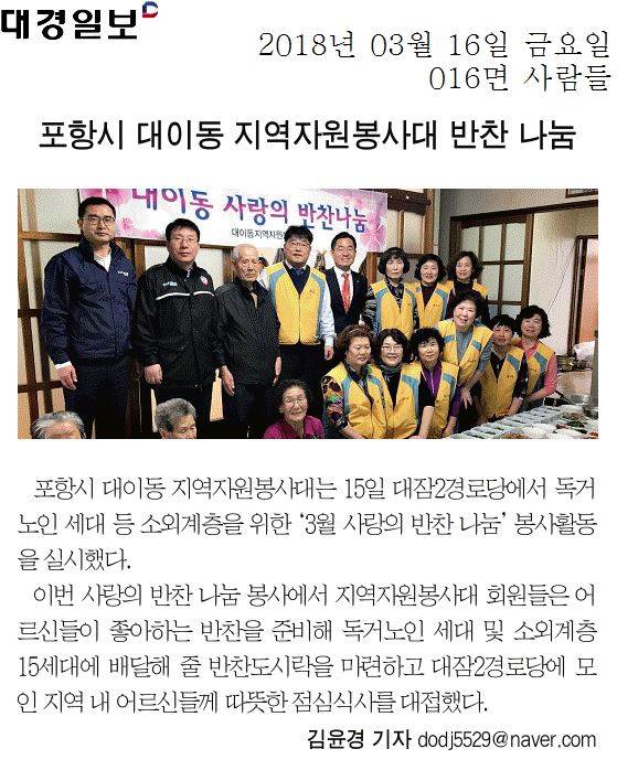 | 포항시 대이동 지역자원봉사대 반찬 나눔 | |||