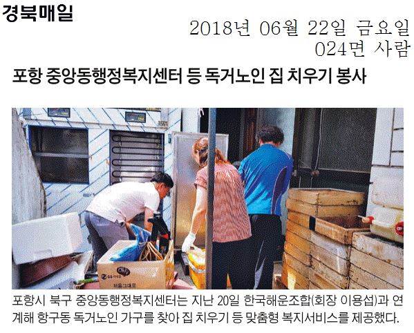| 포항 중앙동행정복지센터 등 독거노인 집 치우기 봉사 | |||