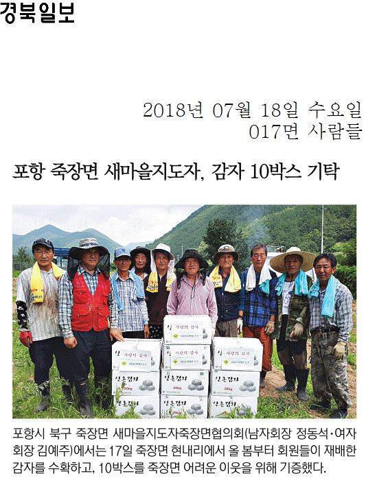 | 포항 죽장면 새마을지도자, 감자 10박스 기탁 | |||