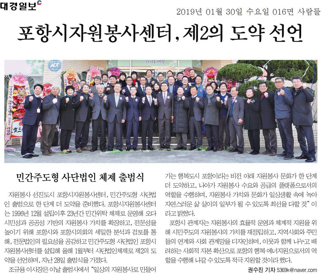 | 포항시자원봉사센터, 제2의 도약 선언 | |||