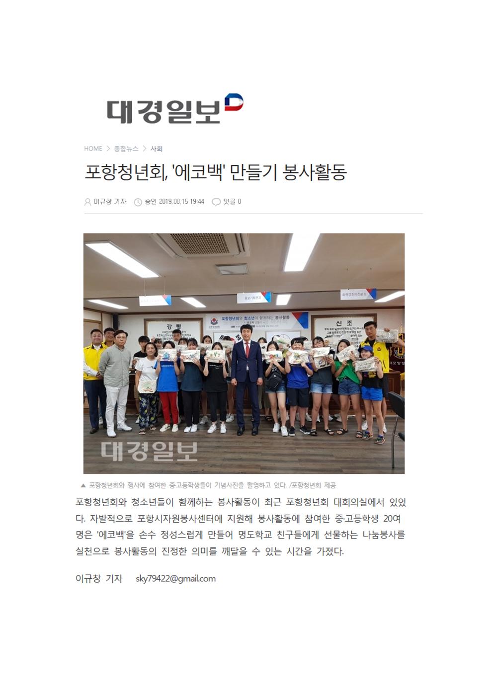 | 포항청년회, 에코백만들기 봉사활동 | |||