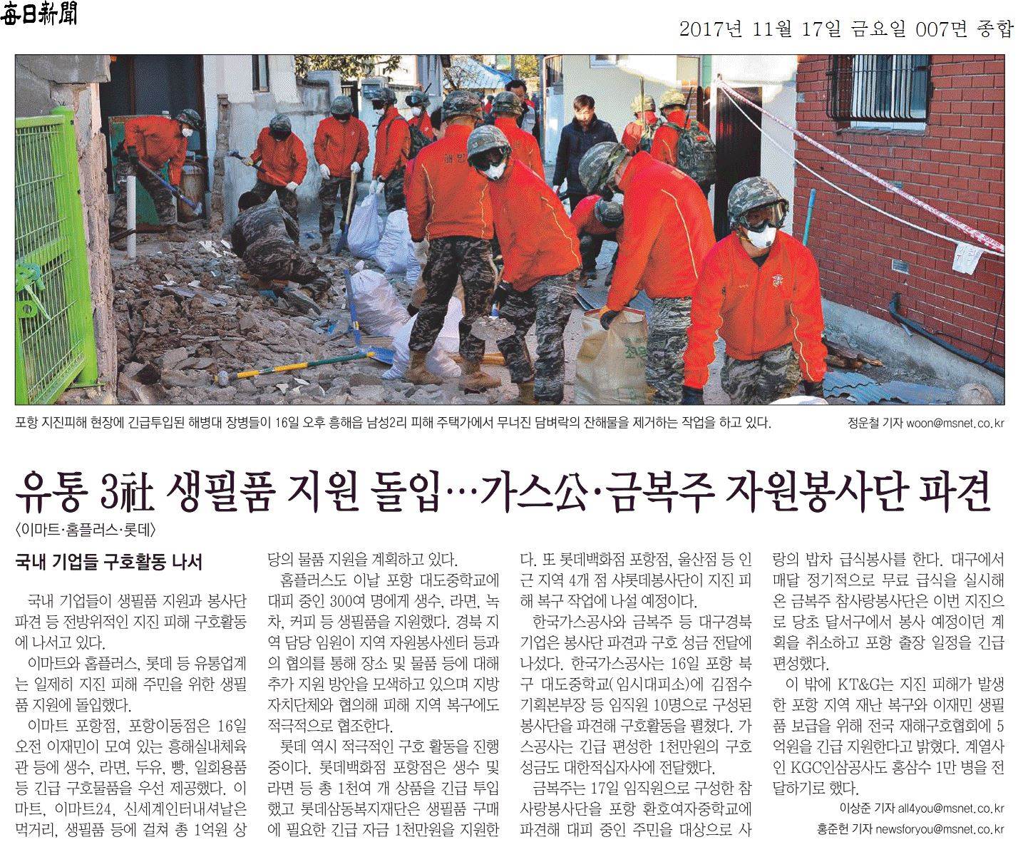 유통 3社 생필품 지원 돌입…가스公·금복주 자원봉사단 파견.jpg 402.8K