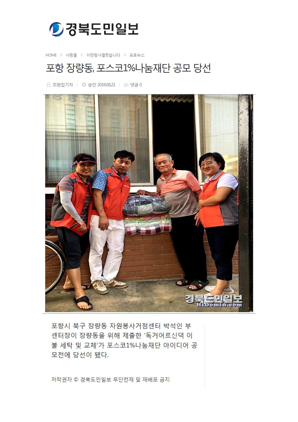 | 포항 장량동, 포스코1%나눔재단 공모 당선 | |||