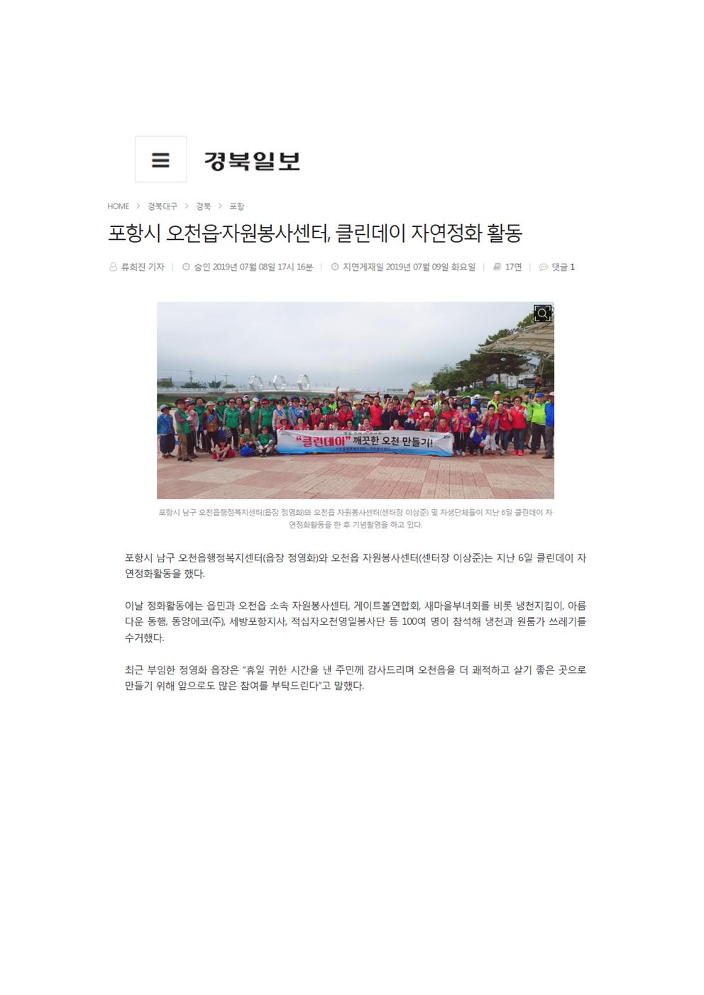 | 포항시 오천읍자원봉사센터, 클린데이 자연정화 활동 | |||